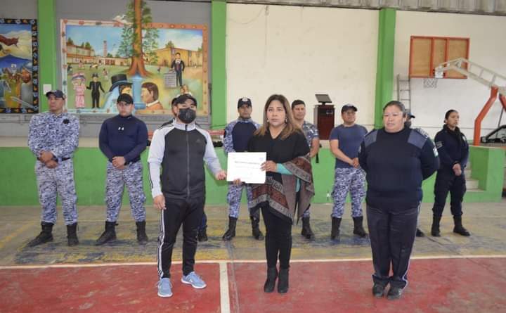 Este jueves, elementos de la Dirección de Seguridad Pública y Movilidad Municipal de Amaxac de Guerrero recibieron adiestramiento en «Orden Cerrado», impartido por el Sargento primero de Sanidad, Adrián Águila Flores a quien la presidenta municipal, Nancy Cortés Vázquez le entregó un reconocimiento por contribuir con las diversas capacitaciones del cuerpo de seguridad de Amaxac.