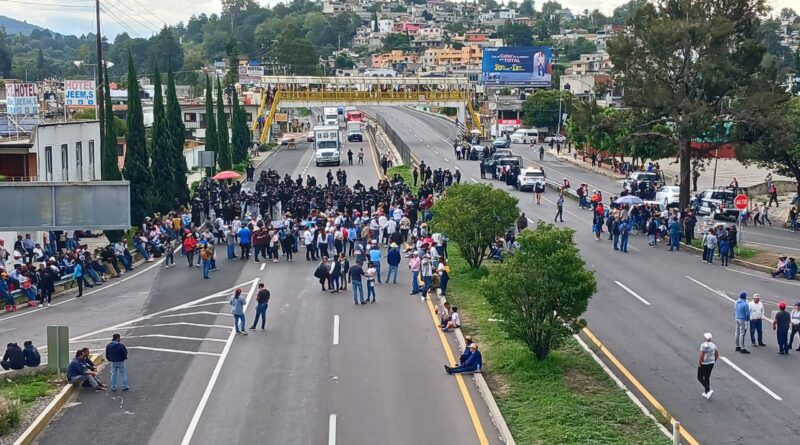 El segundo contingente caminó hacia “La Virgen”, para cerrar la vialidad a la altura de la glorieta de Tlahuicole con sentido hacia Acuitlapilco y hacia la zona del hospital del IMSS “La Loma”.