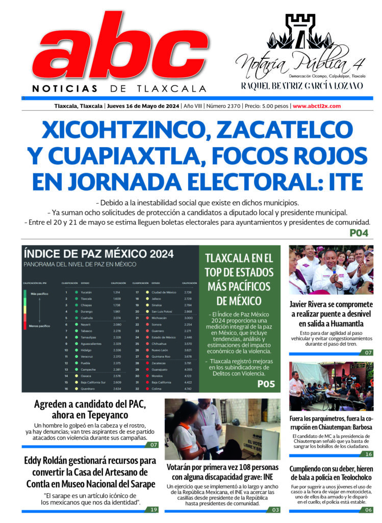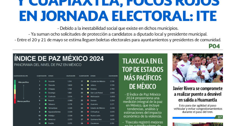 TLAXCALA EN EL TOP DE ESTADOS MÁS PACÍFICOS DE MÉXICO