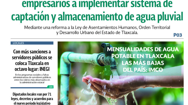 Mensualidades de agua potable en Tlaxcala las más bajas del país: IMCO
