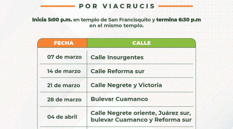Durante todos los viernes de Cuaresma se realizará un viacrucis en diferentes calles, como a continuación se detalla: