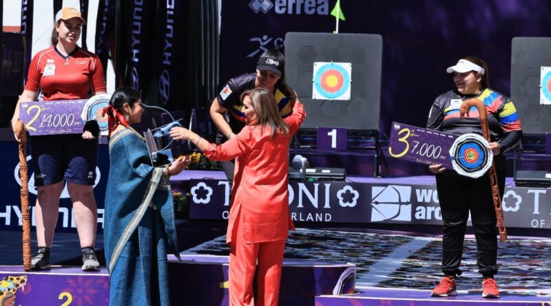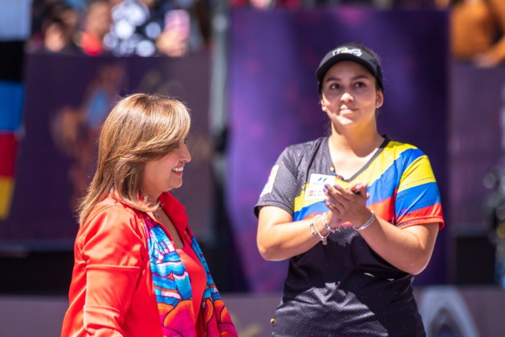 La gobernadora Lorena Cuéllar Cisneros y la directora general de la Comisión Nacional de Cultura Física y Deporte (Conade), Ana Gabriela Guevara Espinoza presidieron la premiación de la final de Copa del Mundo de Tiro con Arco Tlaxcala 2022 en la modalidad de arco compuesto rama femenil, donde se coronó la arquera colombiana, Sara López.