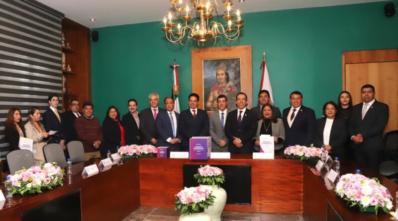 En el salón verde del recinto legislativo, los funcionarios, acompañados de integrantes del gabinete legal, entregaron de manera formal a la presidenta de la Mesa Directiva, Maribel León Cruz; el presidente de la Junta de Coordinación y Concertación Política, Éver Alejandro Campech Aguilar, y al presidente de la Comisión de Finanzas y Fiscalización, Bladimir Zainos Flores, el documento que contiene la Ley de Ingresos y el Presupuesto de Egresos para el próximo ejercicio fiscal, así como diversas reformas al Código Financiero para el Estado de Tlaxcala y sus Municipios.