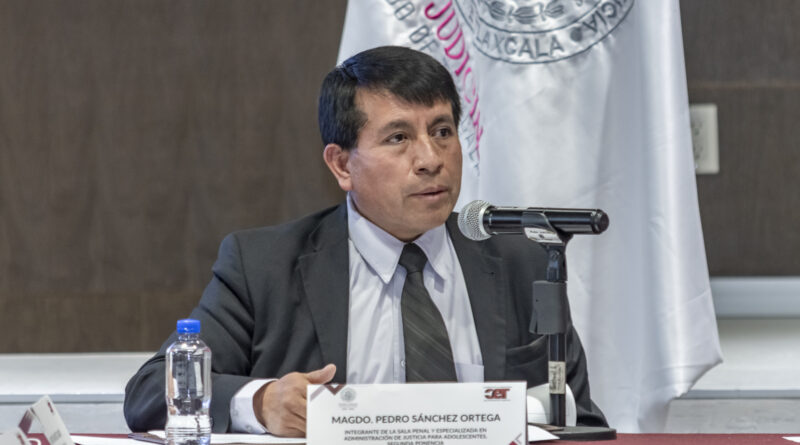 Como parte del conversatorio de inducción denominado “El Poder Judicial y los municipios, una relación clave para el derecho humano de acceso a la justicia”, el magistrado titular de la Segunda Ponencia de la Sala Penal y Especializada en Administración de Justicia para Adolescentes, Pedro Sánchez Ortega, dio a conocer ante presidentas y presidentes municipales de Tlaxcala, la estructura orgánica del Tribunal Superior de Justicia en el Estado (TSJE).