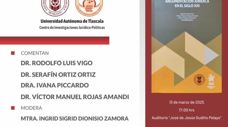 Presentarán el libro: «Nuevos Horizontes de la Argumentación Jurídica en el Siglo XXI» -UATx