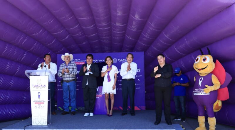 Para la presentación de la canción representativa del Campeonato Mundial de Voleibol de Playa Tlaxcala 2023, la directora IDET destacó que con el arribo del Trophy Tour a Zacatelco suman 45 los municipios visitados.