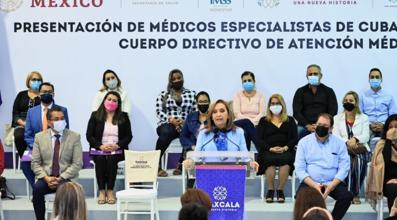 En el Centro de Convenciones de Tlaxcala, la titular del Ejecutivo local dio la bienvenida a los profesionales de la salud cubanos que cuentan con especialidades de cardiología, nefrología, oftalmología, neurología, otorrinolaringología, medicina interna, pediatría y dermatología, quienes darán atención médica en los hospitales IMSS-Bienestar de Calpulalpan, Tequexquitla, Huamantla, Contla, Tlaxcala, Tlaxco, Zacatelco y Tzompantepec.