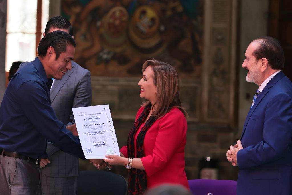 • Entregó certificados del SARE a municipios y un reconocimiento al Congreso local por lograr su integración al Catálogo Nacional de Regulaciones, Trámites y Servicios