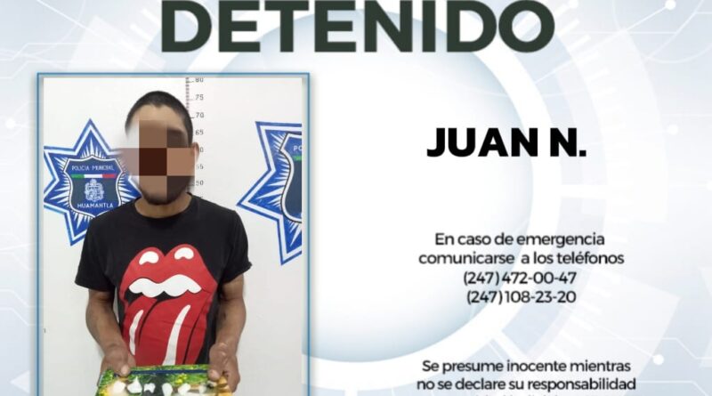 PRESUNTO DISTRIBUIDOR DE SUSTANCIAS PROHIBIDAS ES APREHENDIDO POR POLICÍAS DE HUAMANTLA