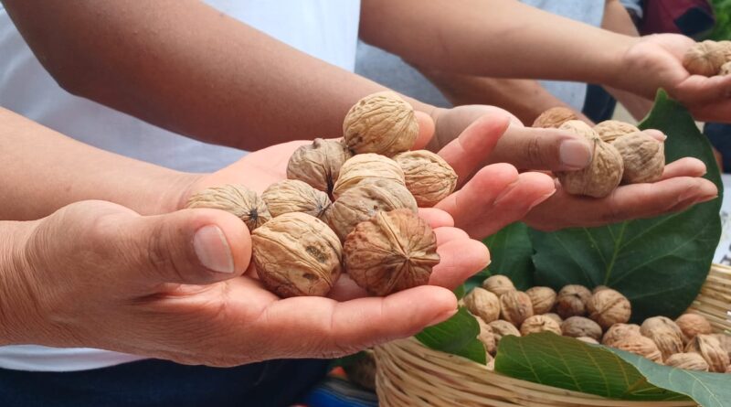 “Lo hacemos para mejorar la producción, por ejemplo, si un árbol tiene frutos muy pequeños y queremos que sean mejores, lo injertamos a propósito para que comience a producir mejor. Esto ha dado como resultado nuevos tipos, ya tenemos 12 pero queremos mejorar. También lo hacemos porque un árbol normalmente tarda entre 10 y 12 años para comenzar a producir, con los injertos las nuevas ramas tienen nueces en dos o tres años”, dijo uno de los campesinos.