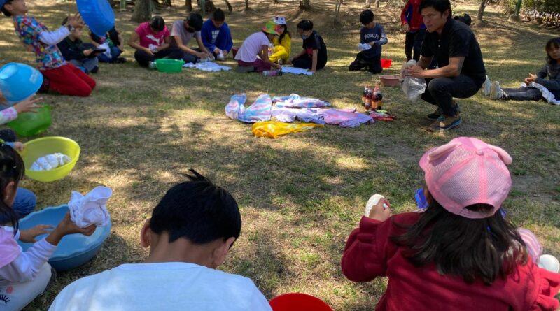 La actividad comenzó con el taller «tie-dye» o «teñido