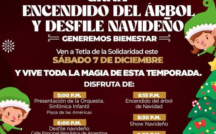 El presidente municipal de Tetla Giovani Montiel López, dio a conocer que, con el objetivo de fomentar la unión de las familias, el próximo sábado estarán realizando el encendido del árbol de navidad, esto en Plaza de las Américas.