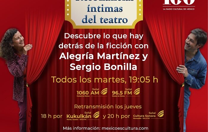 En el marco de actividades por su centenario, Radio Educación, institución de la Secretaría de Cultura del Gobierno de México, estrena “Resonancias íntimas del teatro”, un programa dedicado a quienes hacen posible este arte escénico desde diferentes perspectivas, lo mismo en el escenario, que detrás del telón, y más allá de él.