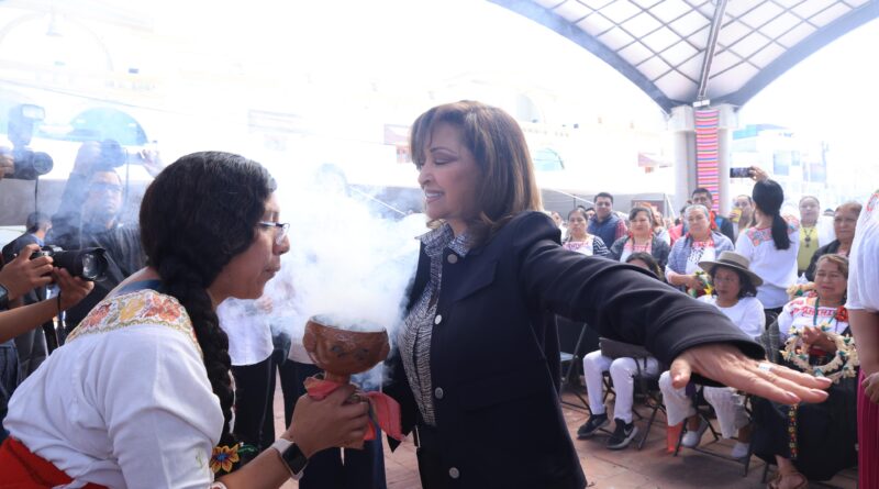 Con una ceremonia prehispánica para purificar y armonizar los espacios, recibieron en Contla a la gobernadora Lorena Cuéllar Cisneros, donde hombres y mujeres que buscan rescatar la herencia ancestral de Tlaxcala adaptaron con flores y hierbas aromáticas un pequeño lugar en la plaza en la que se realizó el Foro para las Mujeres y Niñas en toda su diversidad: Derechos, Igualdad y Empoderamiento 2025.