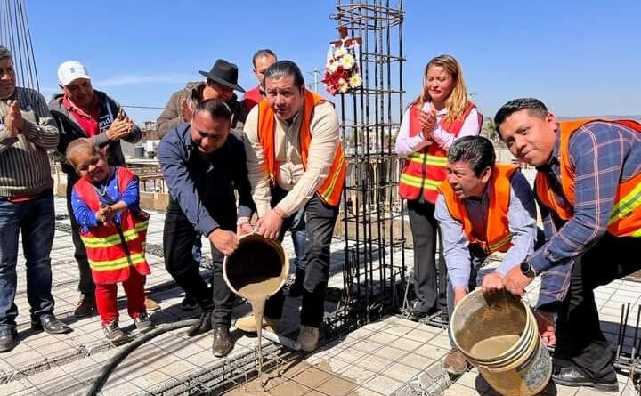 La mañana de este viernes 10 de marzo, autoridades del municipio de Contla de Juan Cuamatzi, encabezados por el alcalde Eddy Roldán y acompañado por la Síndico, regidores, presidentes de comunidad y de vecinos, dieron banderazo para iniciar el colado del primer nivel del Mercado Municipal.