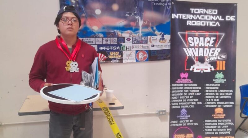 Robot AtrioX, integrantes: Jesús Eduardo González Bello y Luis Fernando Ramírez Morales. En la categoría Mini sumo Autónomo Profesional  y Aarón Hernández Jiménez, egresado de la Autónoma de Tlaxcala.