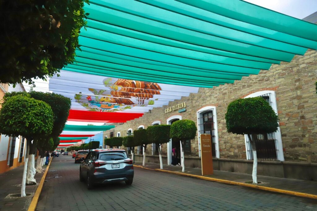 Esta iluminación y decoración que fusiona ambientación tradicional con un toque de modernidad permanecerá instalada todo el mes patrio, a fin de que la gente pueda disfrutarla, pues es importante destacar que Tlaxcala es el primer estado del país en utilizar esta técnica con tela para festejar el 15 de septiembre.