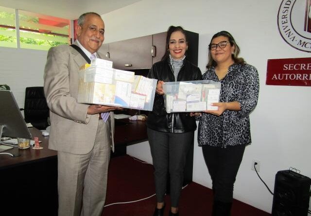 Con visión humanista la Fundación UATxrealiza actividades sustantivas en beneficio de la comunidad tlaxcalteca, por esta razón en el marco de los festejos con motivo de su XVIIIAniversario de vida institucional, la Dra. Gloria Ramírez E., Sria. de Autorrealización y la Mtra. Berenice Flores-Leal V. Coord. de Bienestar, recibieron donación de medicamentos especializados de manos del Mtro. Alejandro P. Molina B., Pdte. de Fundación UATx.
