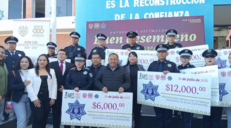 La mañana de ayer (martes 29 de julio), el presidente municipal de Apizaco, Javier Rivera Bonilla, entregó incentivos económicos a 50 efectivos municipales, con esto reconocen y dignifican la labor de los policías.