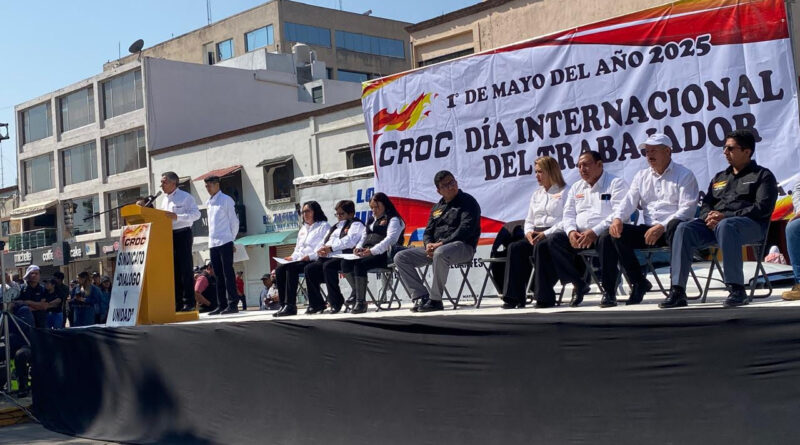 Externaron desde la explanada del parque Cuauhtémoc de Apizaco, este 1 de mayo, en el marco del “Día Internacional del Trabajador”, Eduardo Vázquez Martínez, dirigente de la Confederación Revolucionaria de Obreros y Campesinos (CROC), y Evelyn Paulina Vázquez, secretaria general del sindicato Diálogo y Unidad de Trabajadores del Plástico, la Confección y Manufactureros en General, Similares y Conexos del Estado de Tlaxcala.