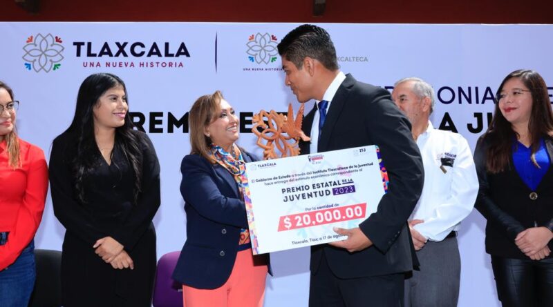 La gobernadora Lorena Cuéllar Cisneros entregó el Premio Estatal de la Juventud 2023 a ocho jóvenes que destacaron en diferentes ámbitos, que ayudan al desarrollo social y contribuyen a enaltecer el nombre de Tlaxcala con sus acciones y logros.