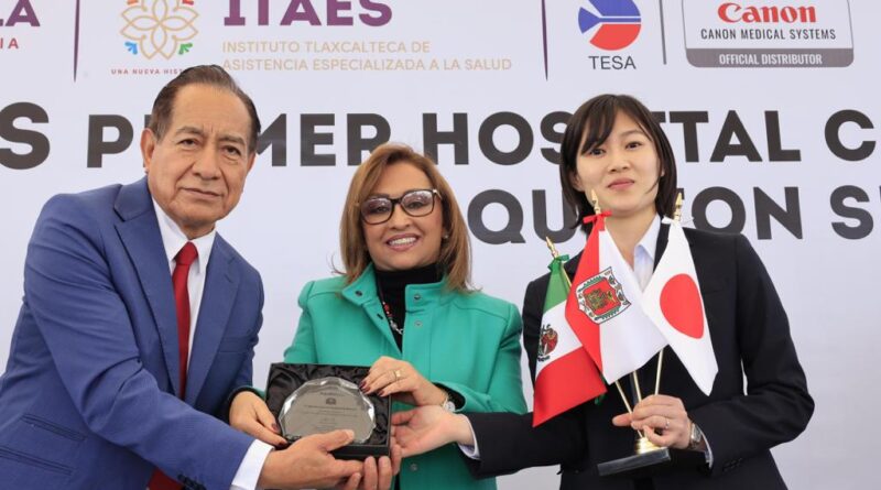 “Nunca escatimaré recursos para brindar a los tlaxcaltecas, lo mejor en equipamiento médico y de diagnóstico en beneficio de los tlaxcaltecas”, afirmó la gobernadora Lorena Cuéllar Cisneros al recibir de manos de la representante de Group Canon Medical Sistem, Rin Koyama el reconocimiento a la innovación tecnológica en el Instituto Tlaxcalteca de Asistencia Especializada a la Salud (Itaes).