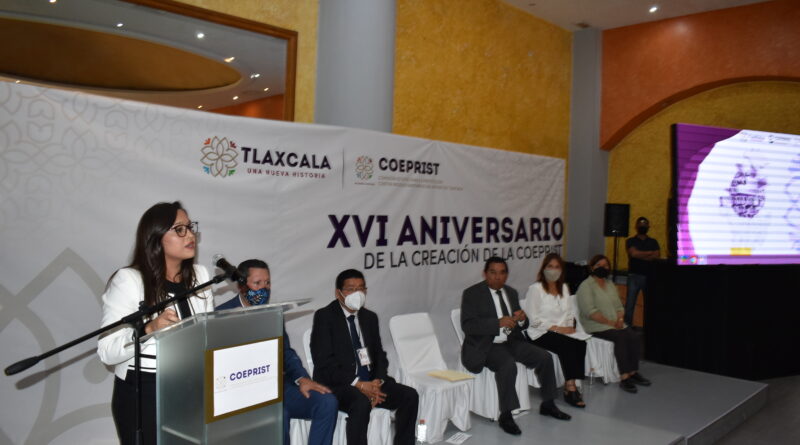 En el marco del XVI Aniversario de la COEPRIST, María Fernanda Espinoza de los Monteros Cuellar, Presidenta honorífica del Comité Consultivo de Bienestar y Desarrollo Social del Estado de Tlaxcala y representante de la Lic. Lorena Cuéllar Cisneros Gobernadora del Estado, en su mensaje destacó la labor que desempeña la Coeprist contribuyendo al bienestar de los tlaxcaltecas.