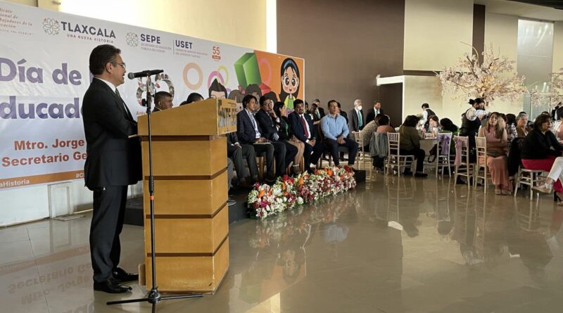 Con la ausencia del líder sindical, Jorge Guevara Lozada quien por cuestión de agenda nacional no pudo asistir al evento, y lo representó José Argelio Tlapale Ramírez, quien destacó y reconoció el profesionalismo de las educadoras y educadores de la entidad, su desempeño permite la formación de una buena conducta y espíritu cooperativo.
