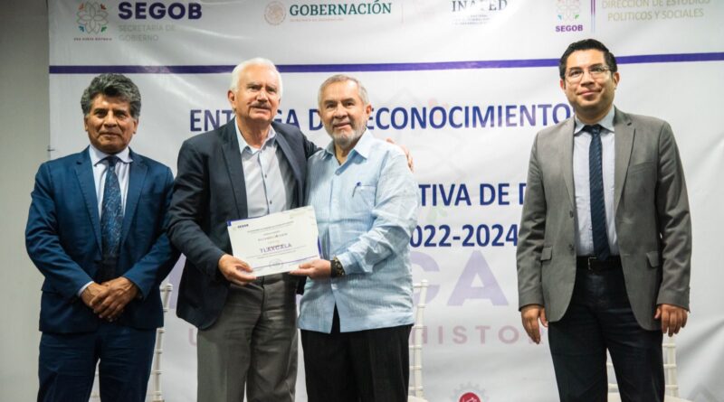 El presidente municipal de Chiautempan, Gustavo Jiménez Romero, en representación del Ayuntamiento, recibió un reconocimiento por su destacada participación en el programa de la Guía Consultiva de Desempeño Municipal 2021-2024, entregado por la Secretaría de Gobierno (Segob) y el Instituto Nacional para el Federalismo y el Desarrollo Municipal (INAFED).