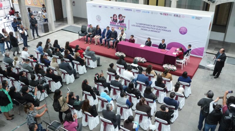 En el patio vitral del Congreso del Estado, se llevó a cabo el reconocimiento a las niñas y los niños ganadores del concurso de relato “Niña y Niño Magistrado Electoral”. Tras su victoria y nombramiento como Magistrados Electorales Infantiles, celebraron una Sesión Extraordinaria del Tribunal Electoral de Tlaxcala con el propósito de promover entre las infancias los derechos político-electorales de los que son titulares.