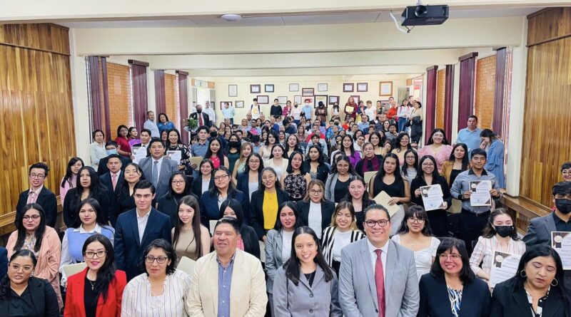 El Maestro Mario F. Subieta Z., Dir. de la Facultad de Ciencias Económico Administrativas de la Autónoma de Tlaxcala, acompañado del Dr. Enrique Vázquez Fdez. y directivos de esta Facultad entregaron los Reconocimientos a los y las Estudiantes que lograron los mejores Promedios en sus Estudios en el período Primavera 2023.