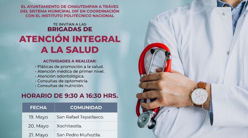 El Ayuntamiento de Chiautempan a través del Sistema Municipal para el Desarrollo Integral de la Familia (SMDIF), invita a la población chiautempense a aprovechar los servicios médicos que ofrecerán las Brigadas de atención integral a la salud del Instituto Politécnico Nacional (IPN).