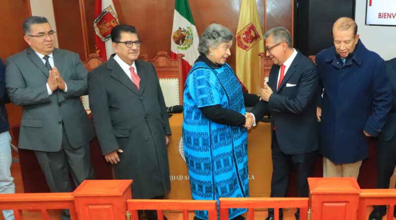 Rector de la UATx da la bienvenida a Beatriz Paredes como catedrática universitaria