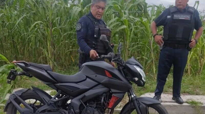 Elementos de la Dirección de Seguridad Pública Municipal, Vialidad y Protección Civil de Chiautempan, aseguraron una motocicleta con reporte de robo que momentos antes fue abandonada.