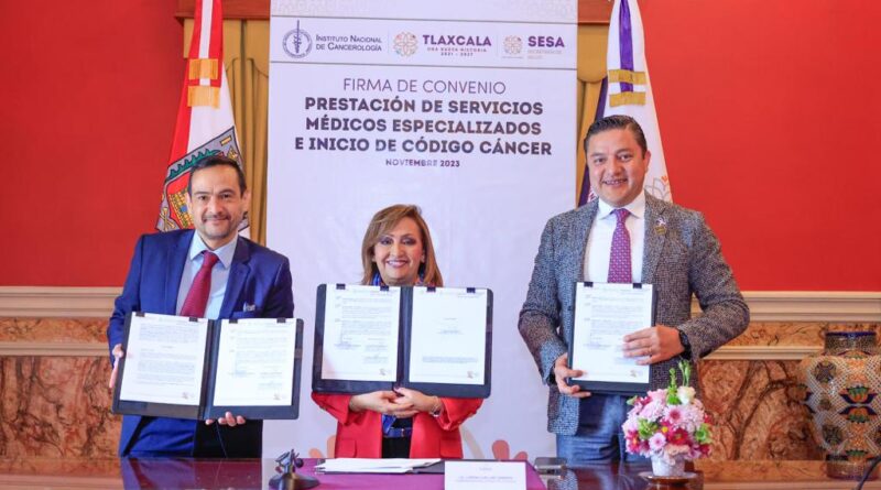 Con la finalidad de que las tlaxcaltecas que sean diagnosticadas con cáncer de mama tengan garantizado el acceso a los servicios especializados de salud, la gobernadora, Lorena Cuéllar Cisneros firmó un convenio de colaboración con el Instituto Nacional de Cancerología (Incan) de la Ciudad de México.