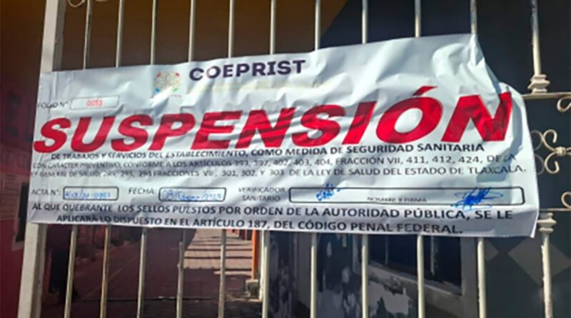 La Comisión Estatal para la Protección contra Riesgos Sanitarios (Coeprist) reforzó la revisión en hoteles y moteles, ahora en Tlaltelulco y Chiautempan, derivado de ésta, suspendió cinco lugares por diversas irregularidades, algunas de ellas críticas.