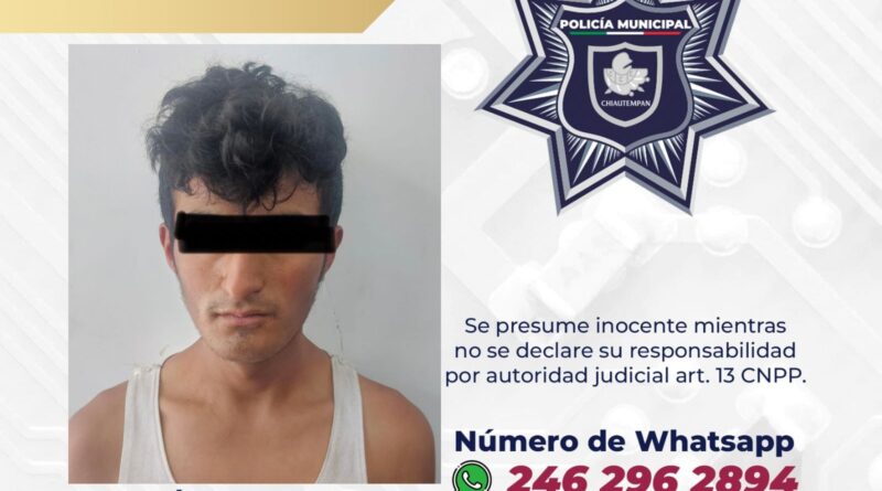 Rescata Policía Municipal de Chiautempan a persona retenida; antes había intentado cometer un ilícito