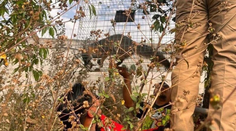 Los empleados del ayuntamiento actuaron porque alguien les reportó que estaba arriba de un árbol y unos perros no le permitían bajar, por lo que su solución fue capturarlo y luego encerrarlo en una jaula para después entregarlo a donde lo exhibirán al público.