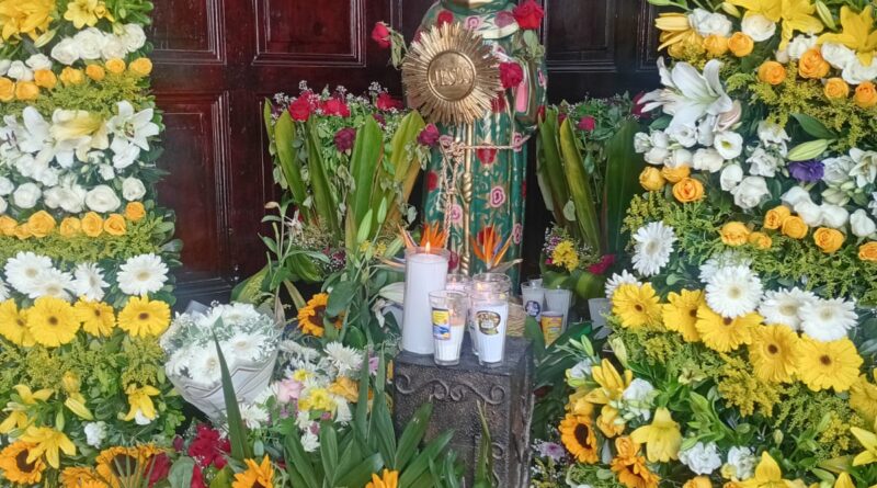 arreglos florales, se reparte tamales y posteriormente el baile popular en el Teatro del Pueblo.