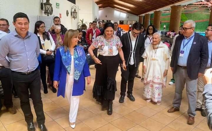 En el evento, la gobernadora de Tlaxcala, Lorena Cuéllar Cisneros, acompañada de la secretaria de Cultura del Gobierno de México, Alejandra Frausto Guerrero, inauguró la “Capacitación Original 2023”, dirigida a artesanos y artesanas del país para la defensa de diseños, iconografías, tramas, bordados o tejidos que realizan a través de sus piezas.