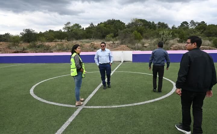 rehabilitación de la cancha del Barrio de Tepetlazingo, con la valiosa participación de jóvenes y