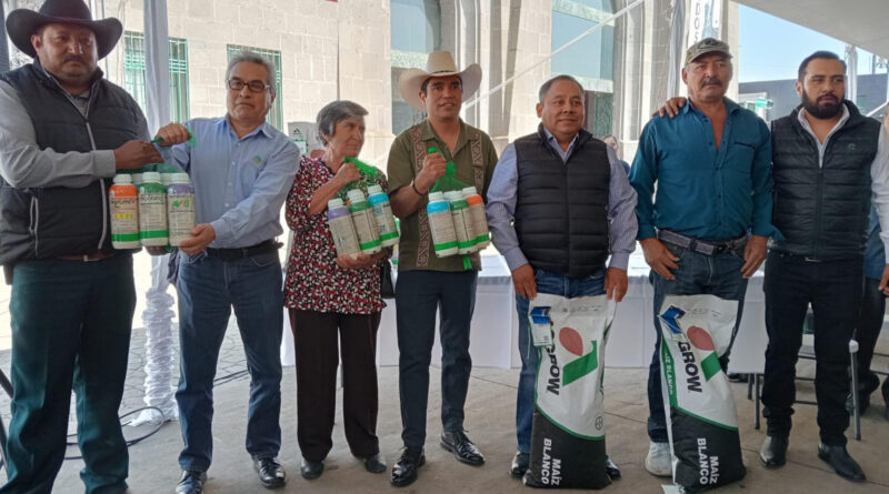 Este martes, el presidente Javier Rivera Bonilla, en conjunto representantes del gobierno estatal y federal, hizo entrega de fertilizante y semilla de maíz híbrido