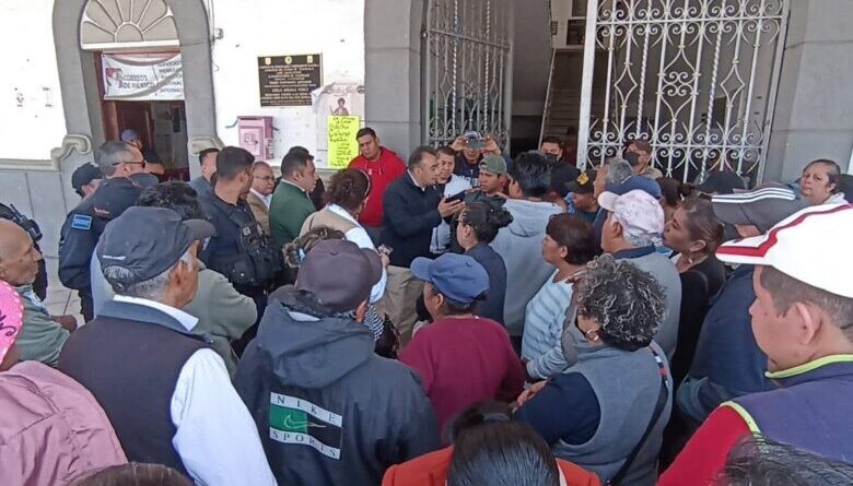 Se manifiestan pobladores de Zacatelco en alcaldía por carencia de agua potable