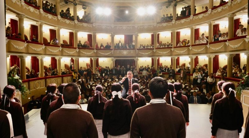 “Cantar a la patria no es una consigna, sino una práctica cotidiana desde cómo tratamos a los demás hasta cómo defendemos lo público y es que la patria también se canta desde las aulas, se defiende cuando hay maestras y maestros que enseñan con vocación, se construye cuando hay niñas y niños que se educan con esperanza, se honran cuando entendemos que un país justo empieza por garantizar el derecho a la educación, no como dádiva sino como principio”, aseveró