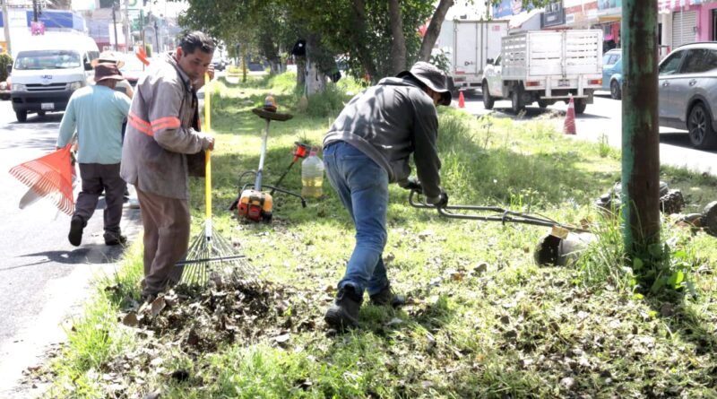 Servicios Públicos de Chiautempan dan mantenimiento a espacios públicos del municipio
