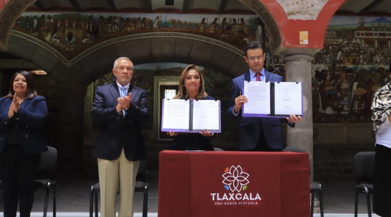 En el Patio Central de Palacio de Gobierno, la mandataria estatal resaltó que a través de la firma de este instrumento colaborativo se fortalece el trabajo coordinado y se reafirma la suma de voluntades para favorecer a los distintos sectores de la sociedad y lograr la justicia social, la paz y el bienestar de las familias tlaxcaltecas.