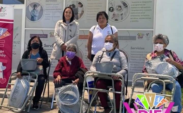 El presidente municipal de Santa Cruz Tlaxcala, David Martínez del Razo, informó que “contribuyendo a quien menos tienen y coadyuvando al bienestar y la salud de los ciudadanos, la Administración del Patrimonio de la Beneficencia Pública del Estado de Tlaxcala (APBPET) en coordinación con el Sistema Municipal DIF (SMDIF) de Santa Cruz Tlaxcala, hicieron entrega de bastones de un punto, de cuatro puntos, así como andaderas, sillas de baño, sillas de rueda estándar, entre otros;