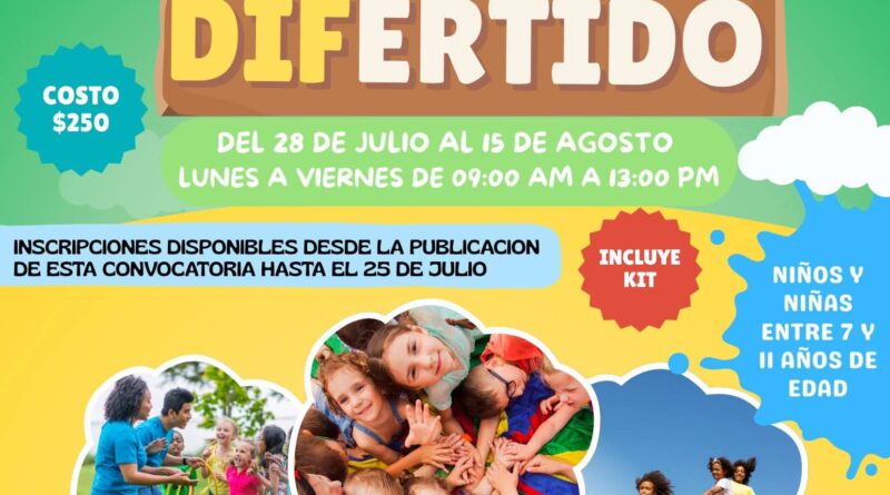 Se invita a niñas y niños de entre 7 y 11 años de edad a inscribirse al Curso de Verano Divertido 2025, el cual se impartirá en la Unidad Básica de Rehabilitación (UBR) de Santa Cruz Tlaxcala.