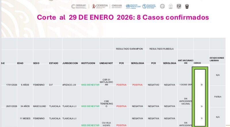 Sube a 8 número de casos positivos de sarampión en Tlaxcala