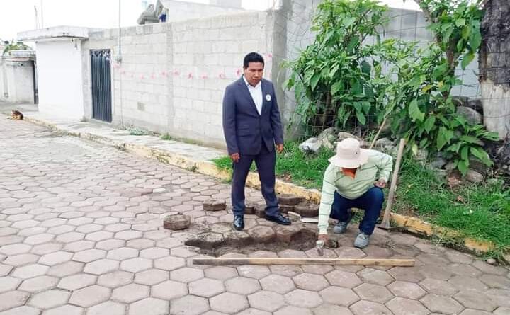 Supervisa alcalde de Tetlanohcan trabajos de bacheo en la comuna